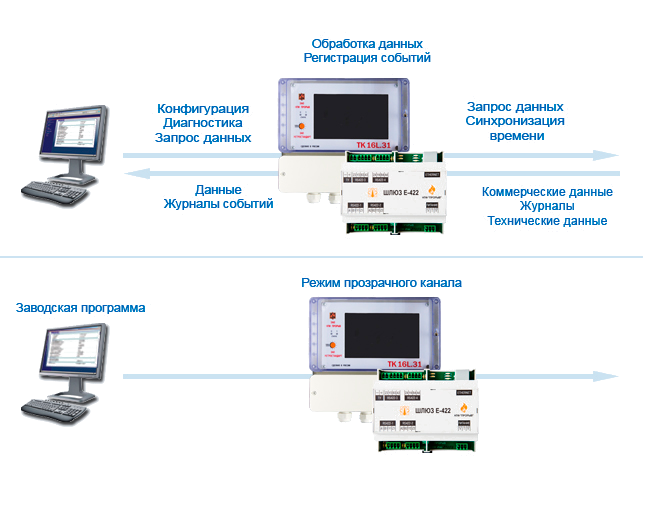 Со счетчиком можно работать как из прикладных программ, так и в режиме прозрачного канала, используя заводские программы. То есть, можно изменять конфигурацию прибора учета удаленно без перекоммутации интерфейсных кабелей или оптопорта. Контроллер обеспечивает синхронизацию времени во всех подключенных счетчиках. На верхний уровень контроллер передает коммерческие, технические данные и журналы событий. | |